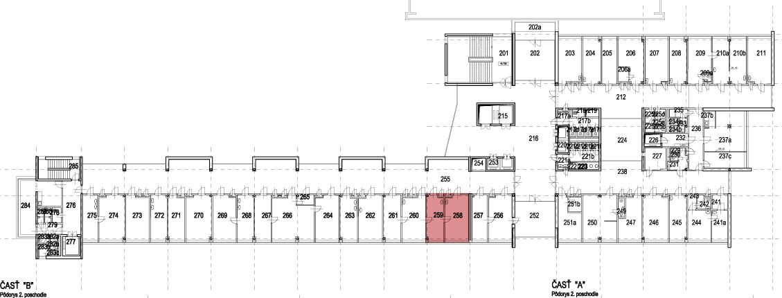 Priestor č.: 258-259 Výmera 36,61 Počet miestností 2 Stav voľný 258 Ordinácia 21,41 m² PDF 259 Ordinácia 15,20 m² PDF