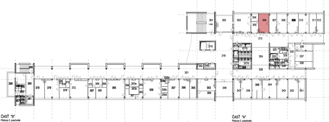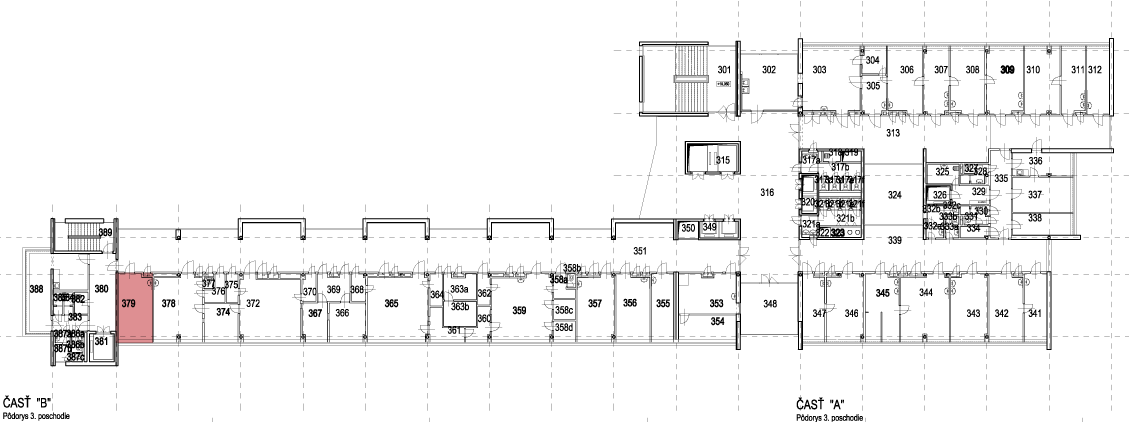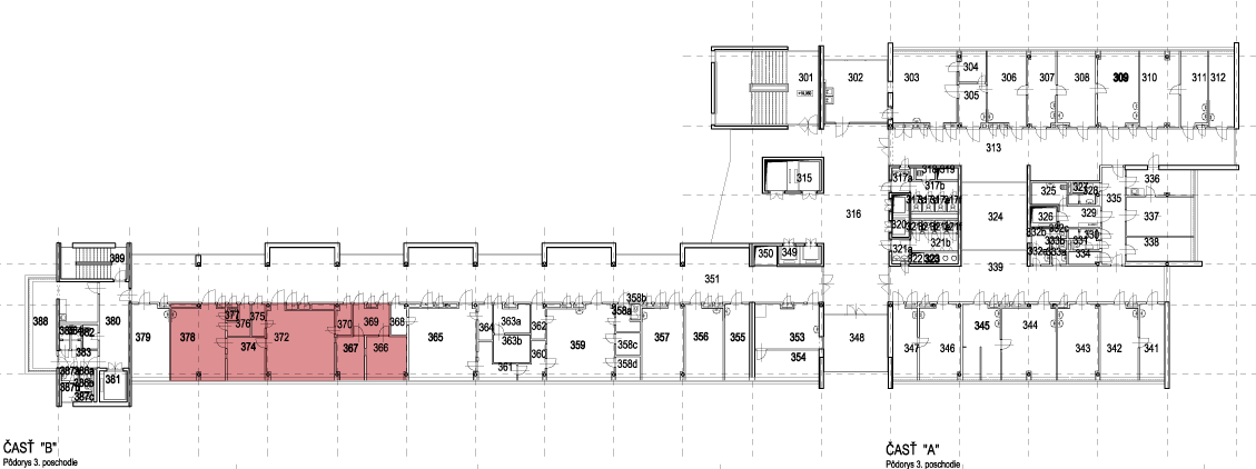 Priestor č.: 366-378 Výmera 118,98 Počet miestností 10 Stav voľný Využitie Vhodné ako RTG pracovisko. V prípade iného typu pracoviska vyžaduje vyššie investičné náklady. 366 Box 13,14 m² PDF 367 Predsieň 9,15 m² PDF 369 Tmavá komora 7,90 m² PDF 370 Neobsadené 3,42 m² PDF 372 RTG 35,78 m² PDF 374 Chodba 12,06 m² PDF 375 Predsieň 3,18 m² PDF 376 Predsieň 3,96 m² PDF 377 WC 0,96 m² PDF 378 RTG – vyšetrenie 29,43 m² PDF